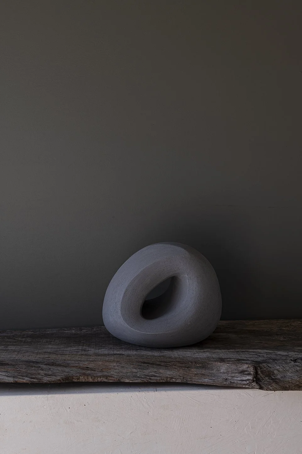 Grogged stoneware clay, terra sigillata, and protective wax. Sculpture handcrafted using the coil building technique, fired in a first bisque, crystal-clear glazed and fired again with the Nude Raku technique.